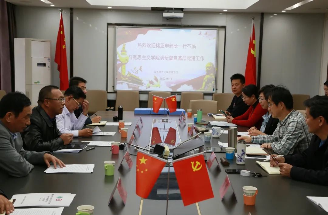 10月15日下午,第一调研组贾跃华、乾达门、刘琦、刘正鼎几位同志在校党委委员、组织部部长褚亚申的带领下,来pp电子调研督查基层党建工作。pp电子官方网站党总支书记贺瑞,党总支副书记、副院长刘爱华,副院长钢布和,教职工第一党支部书记许星杰、教职工第二党支部书记赵图雅、研究生党支部书记范晓刚参加调研。