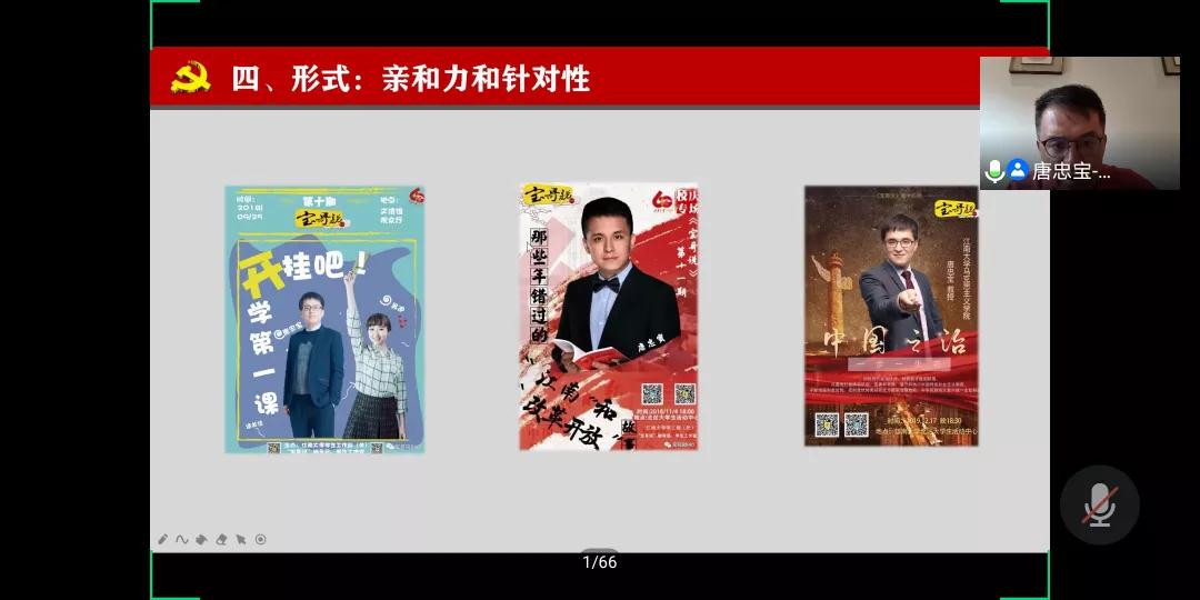 7月7日下午,中央电视台《百家讲坛》主讲嘉宾、中宣部全国“基层理论宣讲先进个人”、教育部全国“高校网络教育名师”、江南大学pp电子官方网站唐忠宝教授应内蒙古师范大学pp电子官方网站邀请,与全区思政课教师相聚云端集体备课,并作了“提升《形势与政策》课堂教学魅力的几点思考”的专题报告。本次线上集体备课会由内蒙古师范大学pp电子官方网站院长李春晖主持,全区各高校思政课教师200余人参会。