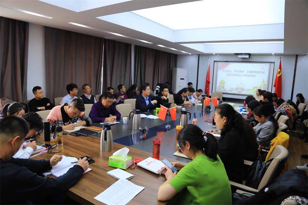 10月28日下午,在pp电子官方网站507会议室,党总支书记贺瑞以“不忘初心、牢记使命主题教育的内涵及在pp电子官方网站的践行”为题,为学院师生讲授“不忘初心、牢记使命”主题教育专题党课。校第五主题教育指导组周绍渊同志到会指导。