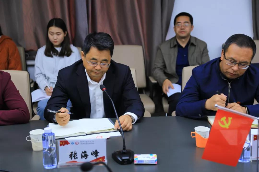 10月12日,pp电子主题教育领导小组组长、党委书记黄雅丽,主题教育领导小组成员、副校长张海峰,主题教育领导小组成员、党委委员、宣传部部长张宝成、组织部部长褚亚申深入pp电子调研指导工作。相关部门负责同志陪同调研。