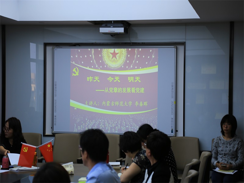 9月30日下午,pp电子官方网站院长李春晖在学院会议室507,以“昨天 今天 明天—从党章的发展看党建”为题,为学院全体教师讲授“不忘初心、牢记使命”主题教育专题党课。校第五主题教育指导组周绍渊同志到会指导,党总支书记贺瑞主持。