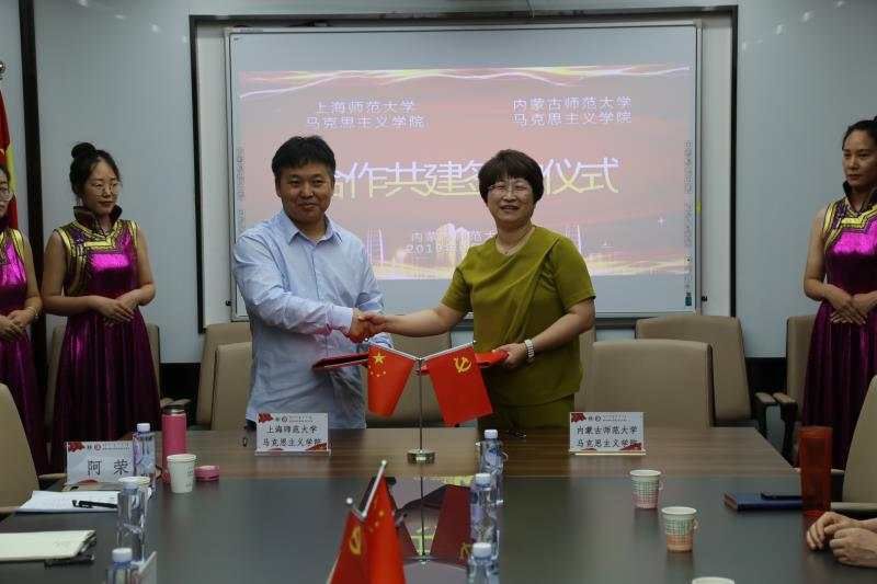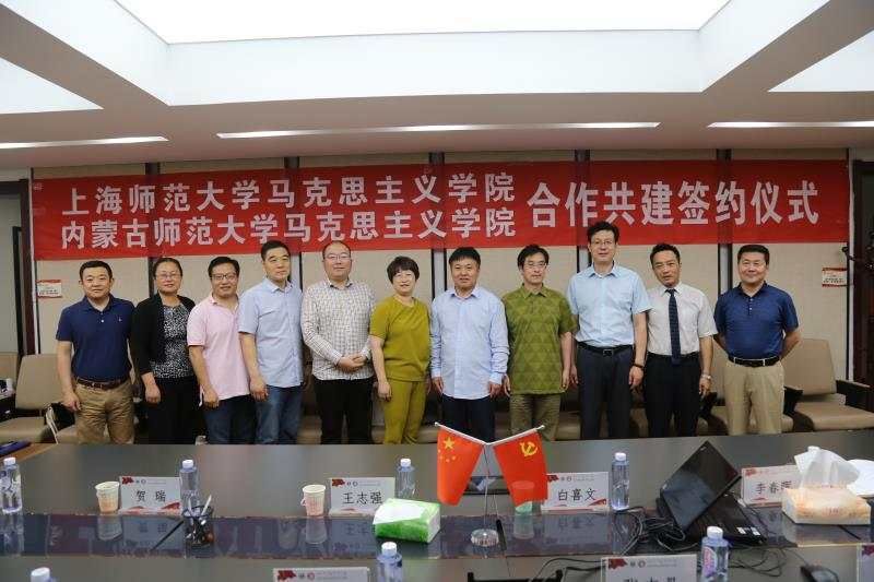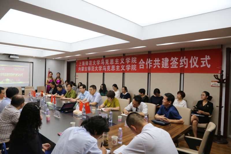 2019年6月21日上午,pp电子在行政楼509会议室隆重举行"内蒙古师范大学pp电子官方网站与上海师范大学pp电子官方网站合作共建签约仪式。"上海师范大学pp电子官方网站院长张志丹教授、思修教研室主任苏令银教授、毛中特教研室马立政博士和pp电子人事处处长白喜文、科技处处长王志强、教务处副处长乌兰格日乐、研究生院副院长满达以及pp电子领导班子、相关老师和全体研究生出席了会议。院长李春晖主持了仪式。