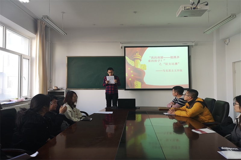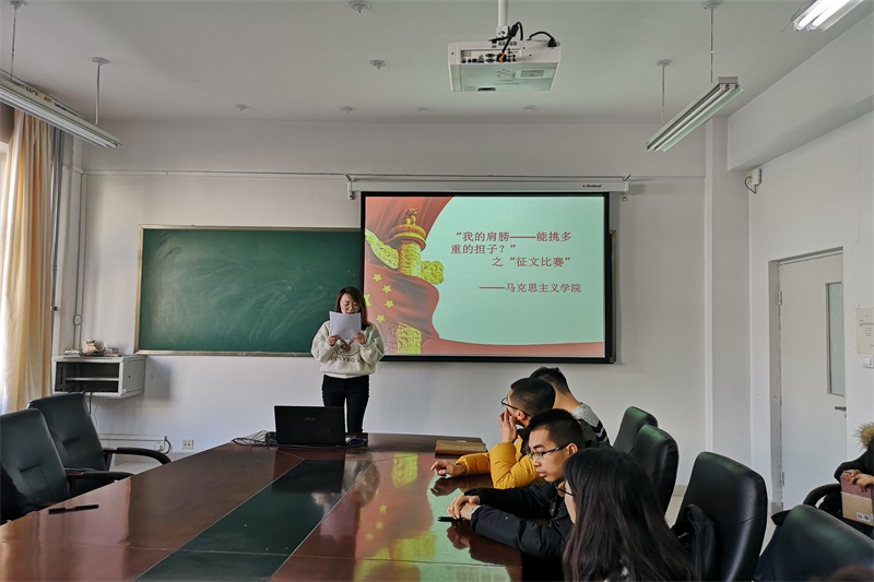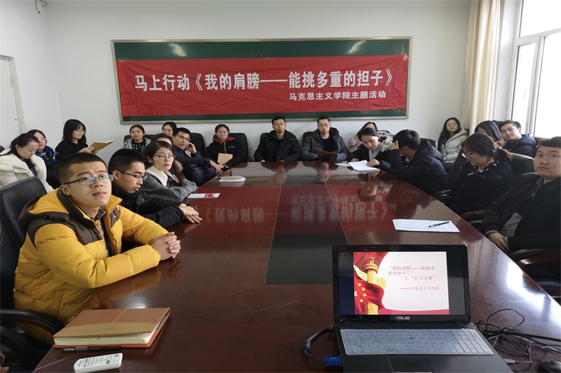 2018年12月25日中午pp电子在盛乐校区学院楼举办“马上行动--我的肩膀能挑多重的担子”之征文比赛活动。团总支书记范晓刚老师及全体研究生参加了本次活动。
