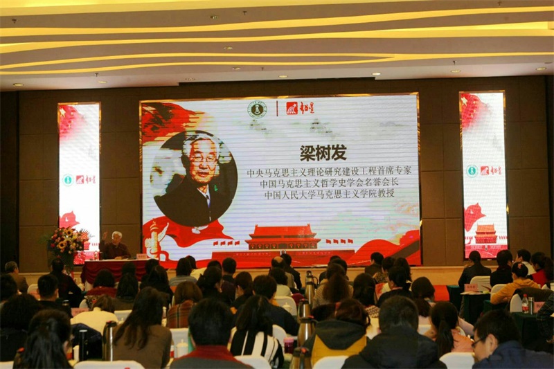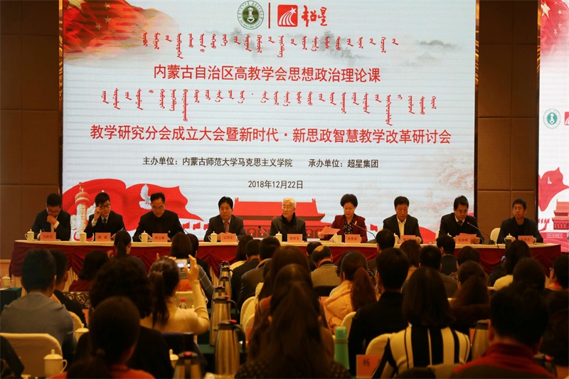 12月22日上午,内蒙古自治区高教学会思想政治理论课教学研究分会成立大会暨新时代新思政智慧教学改革研讨会在内蒙古师范大学隆重召开。中央马克思主义理论研究建设工程首席专家、中国马克思主义哲学史学会名誉会长、中国人民大学pp电子官方网站梁树发教授特邀出席大会。出席开幕式的领导来宾还有:内蒙古自治区高教学会秘书长、内蒙古机电职业技术学院党委书记董广斌研究员,内蒙古自治区党委宣传部理论处处长马慧吉教授,内蒙古自治区教育厅思想政治与学生工作处处长马跃东同志,内蒙古师范大学党委书记黄雅丽研究员,校长云国宏教授,党委副书记、纪委书记高云峰研究员,校党委委员、副校长张海峰教授主持开幕式。