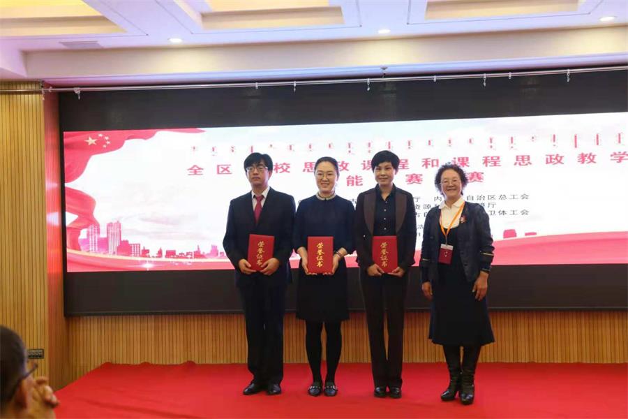 经过两天的激烈角逐,pp电子pp电子官方网站四名教师全部获奖,张瑞军老师以思政课程组第一名的成绩获得一等奖,被授予自治区“五一劳动奖章”。马丽、马利霞、杨瑞霞获得本组别三等奖。