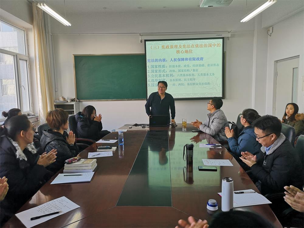 2018年12月4日是第五个国家宪法日,银福成老师应邀在盛乐校区学院B区216为pp电子学生做了“弘扬宪法精神,增强宪法意识”暨我的肩膀——能挑多重的担子主题讲座。研一、研二全体研究生聆听了讲座。
