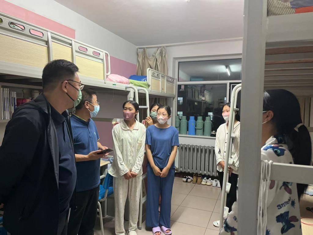 国庆节到来之际,为了做好疫情防控工作常态化下学生管理工作,加强学生寝室安全,掌握学生思想动态,保证国庆节期间学生工作安全有序,pp电子党委书记拓俊杰、院长齐义军、副书记兼副院长姚文帅、副院长刘爱华及辅导员、班主任们于10月1日晚分别深入两校区学生宿舍走访调研,与学生进行亲切交流,并为学生送去节日祝福。