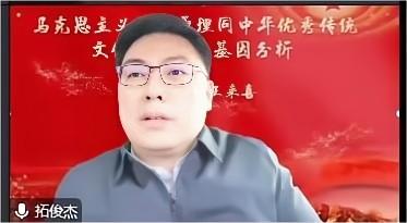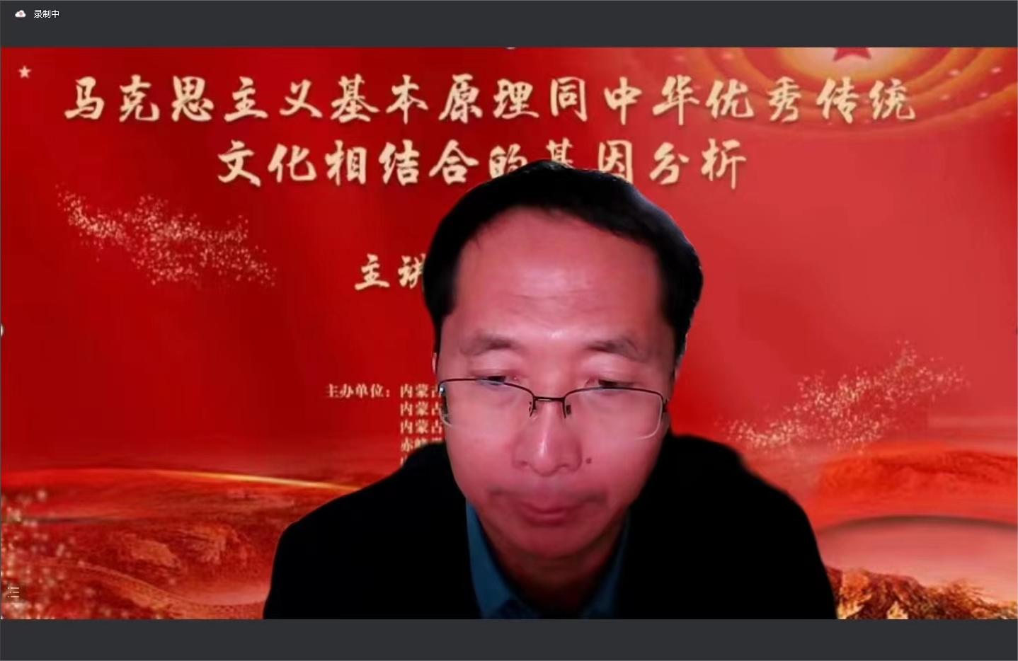内蒙古师范大学党委委员、副校长王来喜教授受邀担任主讲嘉宾,作了题为“马克思主义基本原理同中华优秀传统文化相结合的基因分析”的专题讲座。王来喜教授紧扣党的二十大报告原文,以“两个结合”为着眼点,从经济、政治、文化三个方面阐述了马克思主义基本原理同中华优秀传统文化相结合的三个基因——“公”、“众”“红”。他指出,“公”是公有制经济,“众”是人民性,“红”是马克思主义的本色、中国共产党的底色、中华传统文化的底色。