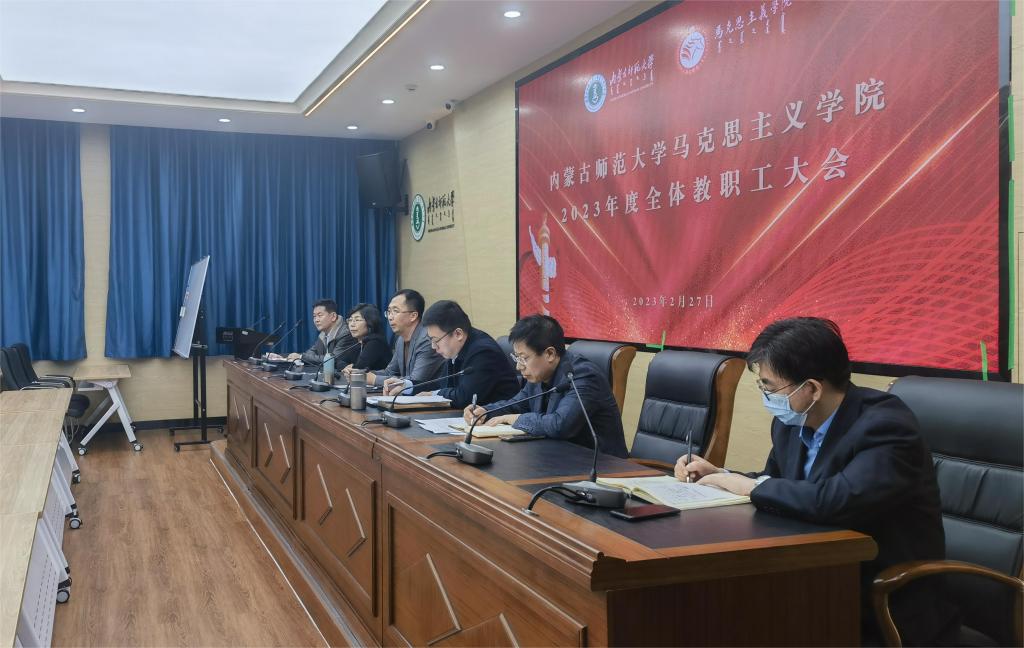 会上,学院党政负责人对2023年学院重点工作进行安排部署。拓俊杰提出四点工作要求:一是要高度重视意识形态工作,增强“四个意识”,坚定“四个自信”。深入贯彻落实党的二十大关于全面从严治党的战略部署,深刻领悟“两个确立”的决定性意义,以永不懈怠的精神履职尽责,严守师风师德规范;二是要把党的二十大报告关于教育的重大部署切实落实到实际教学科研工作中,并紧密结合自治区“五大任务”开展教学授课;三是要深入推进“大思政课”格局建设,充分利用好书本之外的教学资源,创新教学理念,重磅打造“微视频”教学精品成果,推动教育数字化转型发展;四是要加强与学生的谈心交流。他强调,每一位教师都要有更高的政治站位,更广阔的视野,更深厚的情怀,不仅要教好书,做好研究,还要关注学生思想心理动态,及时疏导学生负面情绪,关爱学生心理健康。