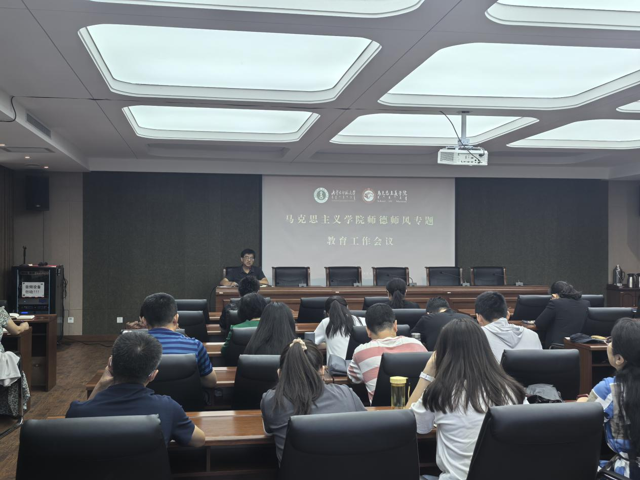 为加强贯彻新时代党的教育方针,落实思政课立德树人根本任务,把加强教师队伍建设作为一流马院建设最重要的基础工作来抓,强化教育家精神引领,提升思政课教师教书育人能力,健全学院师德师风建设长效机制,9月2日下午,pp电子官方网站召开全院师德师风专题教育工作会,学院领导班子和教职工参加会议。