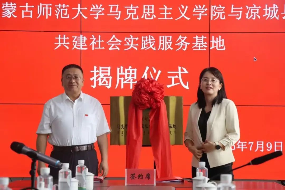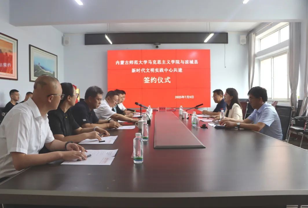 为深入学习贯彻习近平新时代中国特色社会主义思想及党的二十届三中全会精神,充分发挥内蒙古师范大学pp电子官方网站在党的创新理论研究阐释、宣传普及和实践育人方面的独特优势,有效依托凉城县新时代文明实践中心在密切联系群众、精准服务群众、有力凝聚群众方面的基层阵地作用,引导师生将理论学习成果转化为服务乡村振兴的实际行动,上好与现实相结合的“大思政课”,切实推动党的创新理论“飞入寻常百姓家,2025年7月9日,内蒙古师范大学pp电子官方网站与凉城县新时代文明实践服务中心举行共建合作签约暨社会实践服务基地揭牌仪式。内蒙古师范大学pp电子官方网站党委书记王丹、中共党史与党建学院院长张瑞军、pp电子官方网站副院长姚文帅,凉城县委副书记、县长郑东平,县委副书记、政法委书记李志刚,县委常委、宣传部部长任东明以及凉城县各相关单位负责人出席本次活动。