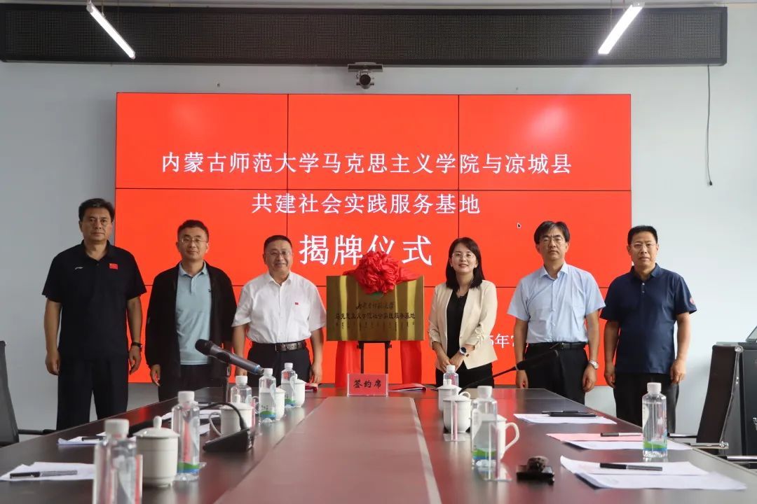 内蒙古师范大学pp电子官方网站党委书记王丹、中共党史与党建学院院长张瑞军与凉城县委副书记、县长郑东平共同为内蒙古师范大学pp电子官方网站社会实践服务基地揭牌。