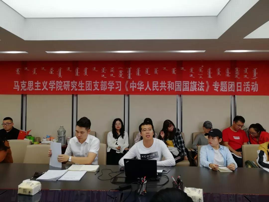 为迎接新中国成立70周年,按照学校党委的安排和校团委的统一部署,pp电子于9月19日下午在赛罕区行政楼507会议室开展了学习《中华人民共和国国旗法》专题团日活动。团总支书记范晓刚老师及全体研究生参加了本次活动。