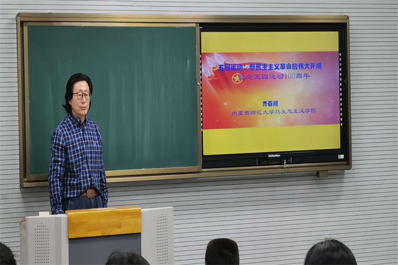 学院全体教工党员和入党积极分子首先聆听了齐百顺教授、达布希拉图副教授和张瑞军副教授关于五四运动的精彩讲解。大家受益匪浅。