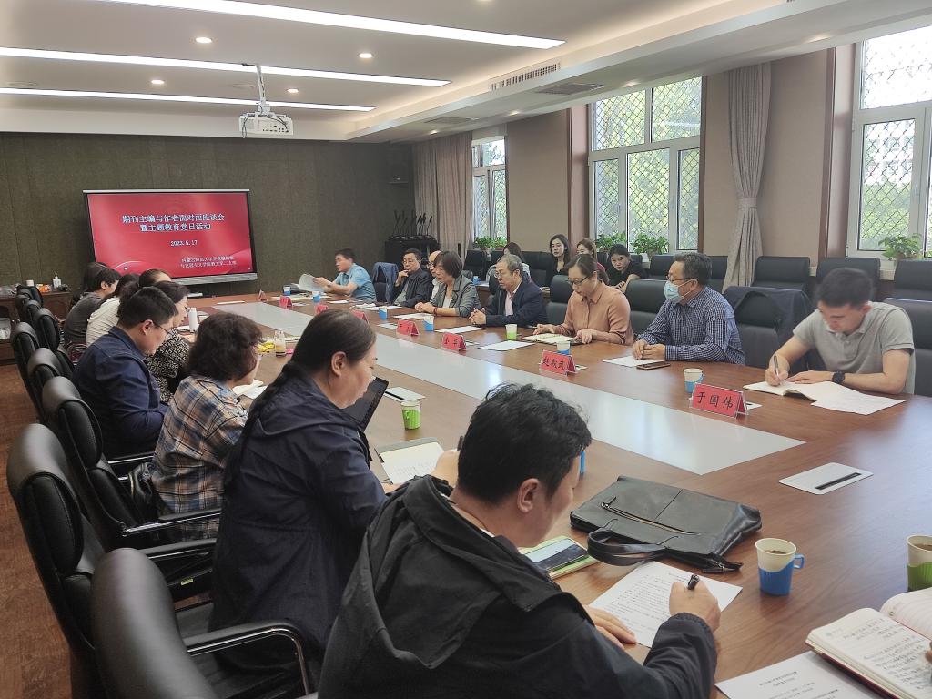 5月17日上午,pp电子官方网站第二教工党支部与内蒙古师范大学学报编辑部,在文史楼二号会议室联合举办了“期刊主编与作者面对面座谈会暨主题教育党日活动”。本次活动的主题为“促进作者的学术成长,提高论文写作水平与发表几率”,活动邀参了自治区社科联社科学术中心《前沿》主编金华、内蒙古党校《理论研究》主编、副主任王利、内蒙古农业大学学报编辑部办公室主任赵殿武、内蒙古财经大学学报编辑部副主任廖泓泉。pp电子学报编辑部主任于永、《内蒙古师范大学学报》(哲社版)副主编张晋海、《内蒙古师范大学学报》(哲社蒙古文版)副主编根泉、pp电子官方网站第二教工党支部书记赵图雅、党员教师及部分研究生参加本次活动。活动由内蒙古师范大学学报编辑部副主任于国伟主持。