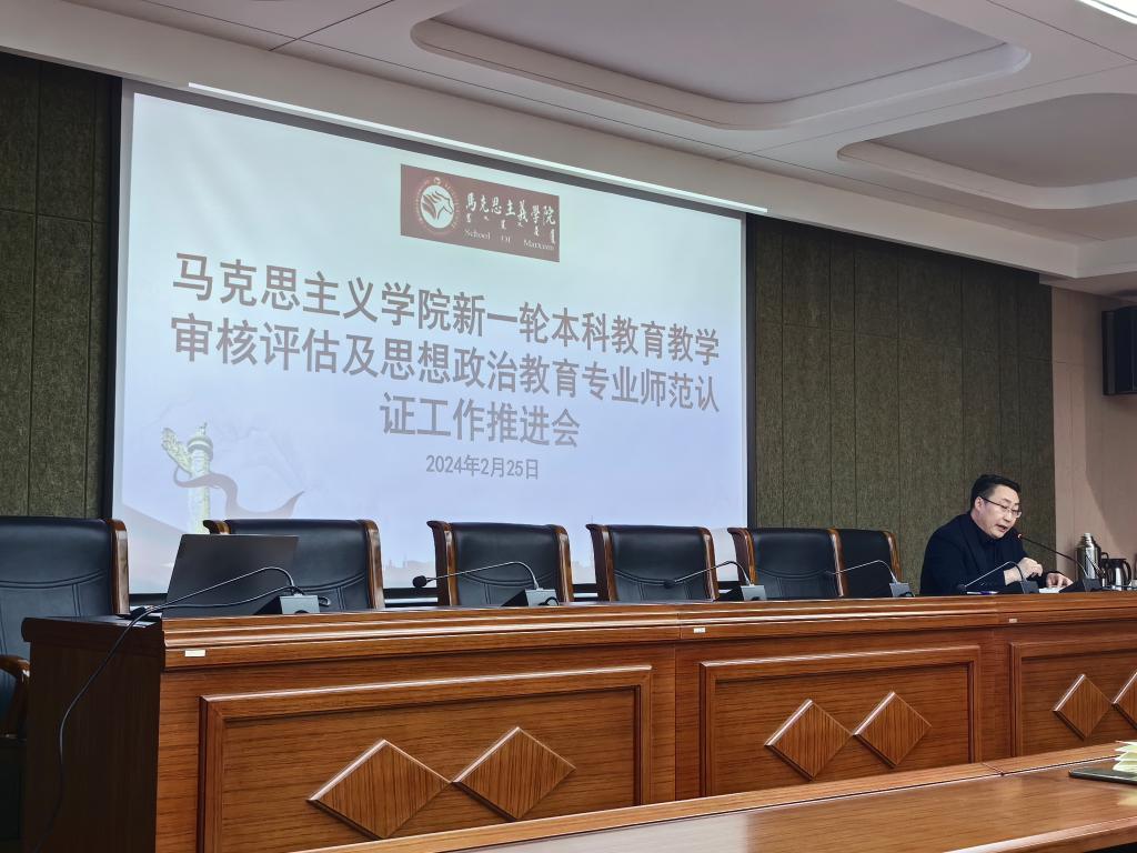 为扎实推进本科教育教学审核评估及思想政治教育专业师范认证工作各阶段重点任务,2月25日,pp电子官方网站在文史楼1号楼召开全体教职工大会,传达学校本科教育教学审核评估推进会会议精神与要求。会议由钢特木尔副院长主持,全体教师参加会议。
