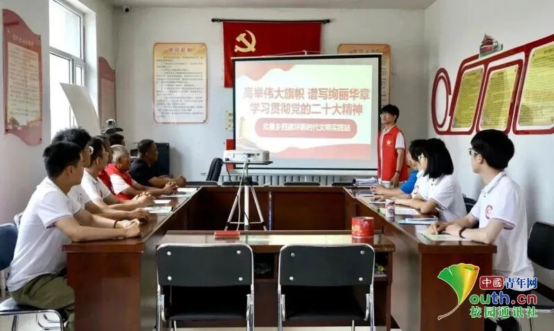 图为内蒙古师范大学”信仰·青年说”理论宣讲团临时党支部成员协助各村支书开展党建工作。中国青年网通讯员 张为 摄