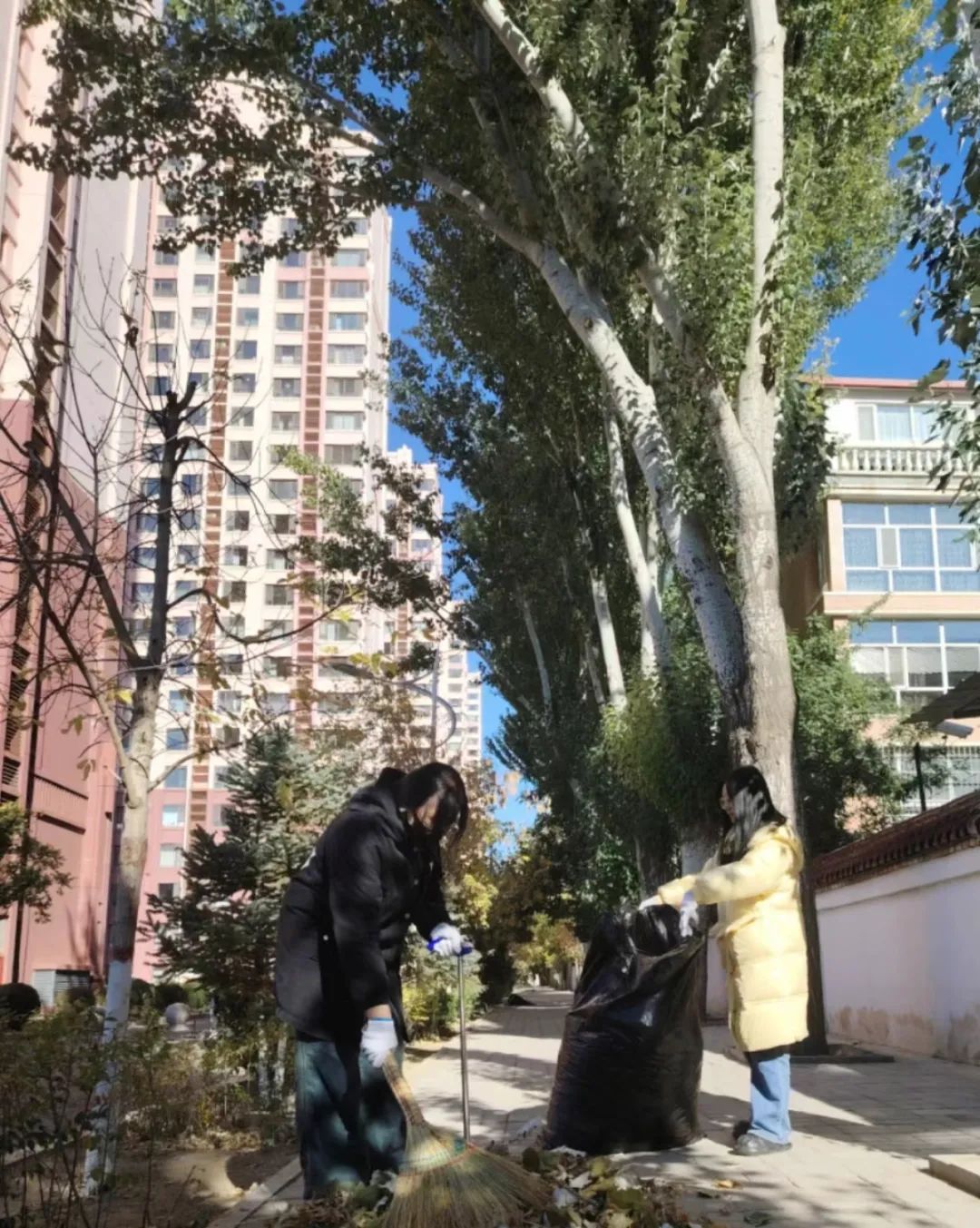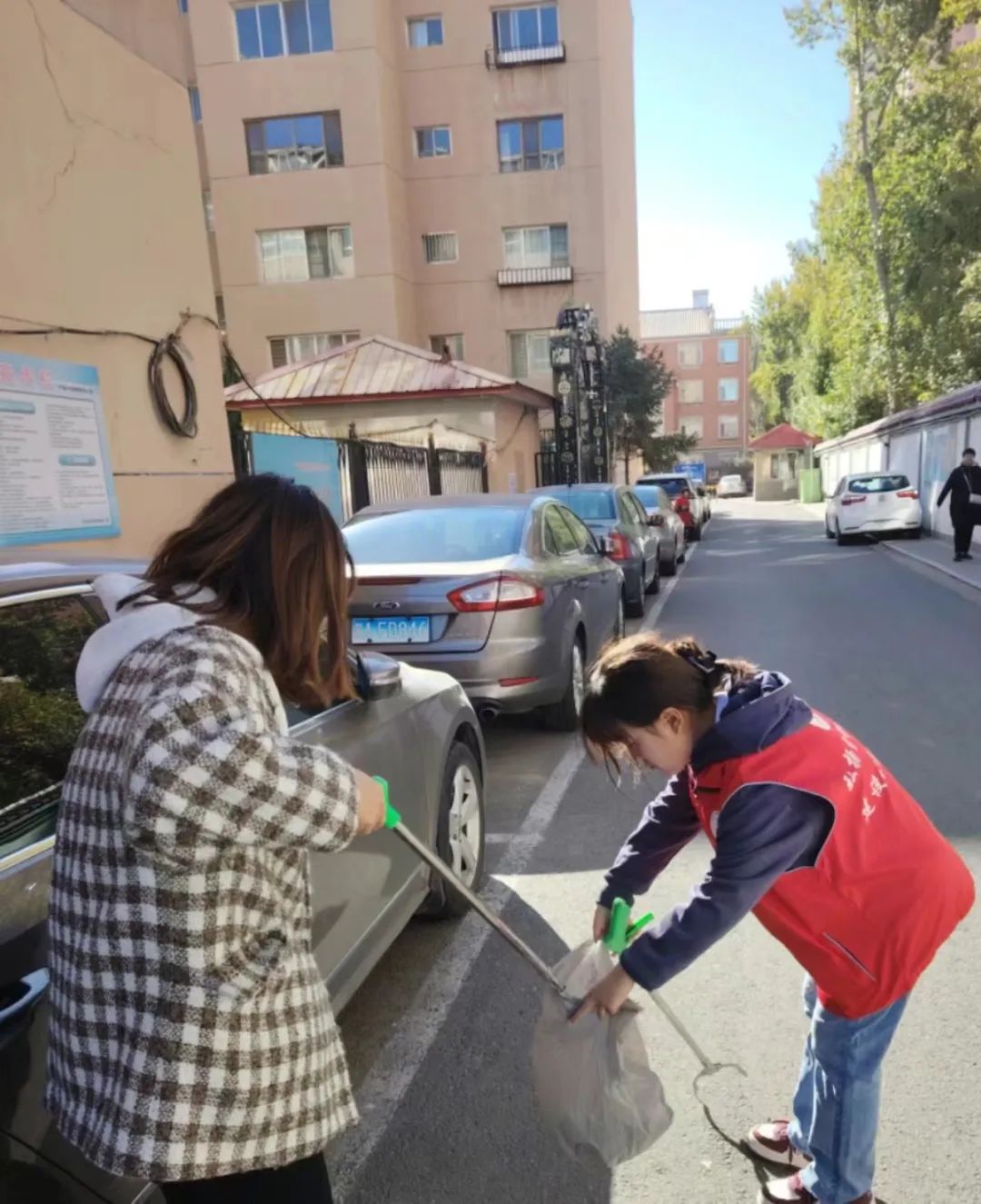 pp电子官方网站志愿者服务队同学到达赛罕区高院社区进行环境清扫活动。
