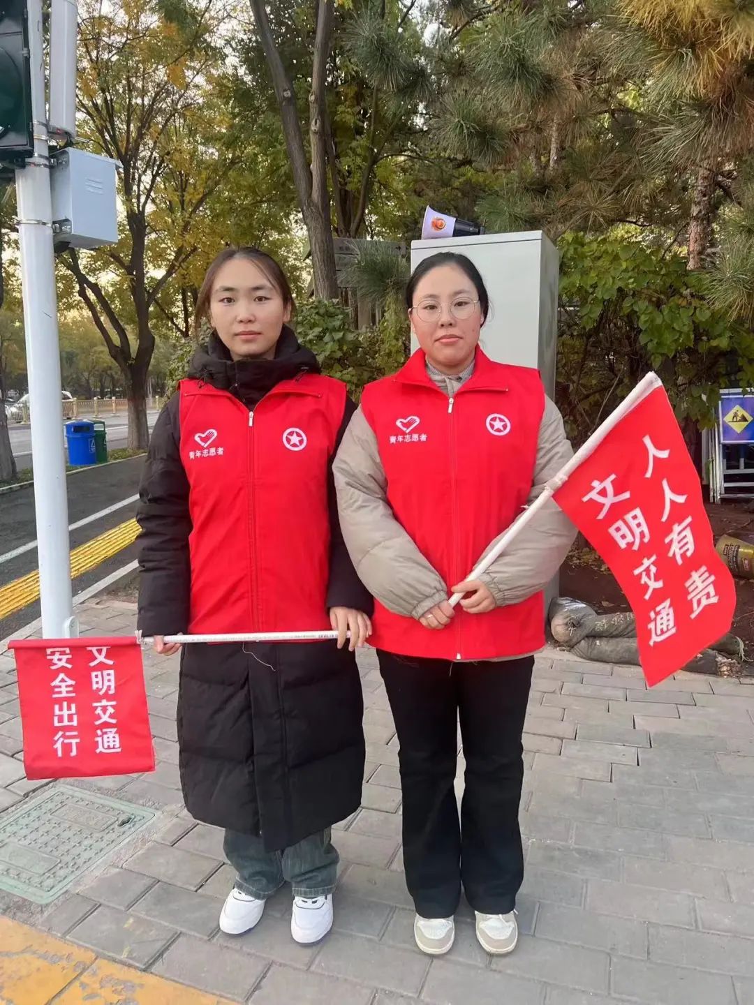秋冬交替之际,pp电子官方网站的志愿者们在早、晚高峰时段,按照规定时间提前到岗,轮流在乌兰察布东路上岗执勤。执勤中,志愿者手持交通引导旗,身穿红马甲,头戴小红帽,协助交警对行人及非机动车辆闯红灯、越线等待、走机动车道等不文明行为进行劝导纠正;向过往行人发出文明出行倡议,倡导大家自觉遵守交通规则,文明出行;帮助有需要的老人、小孩安全过马路;为问路的行人指路等。