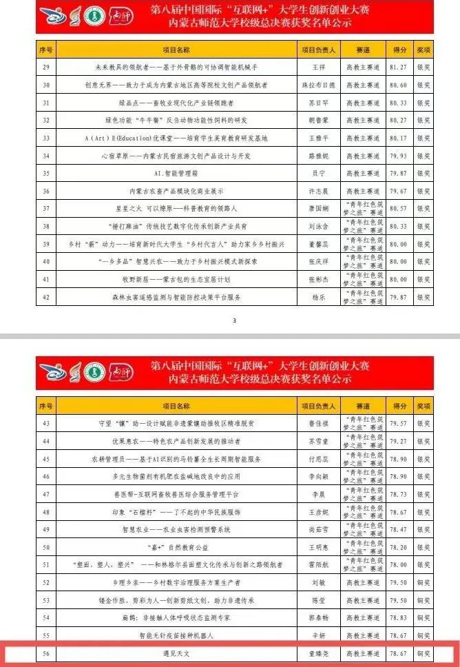 第八届中国国际“互联网+”大学生创新创业大赛 内蒙古师范大学校级总决赛