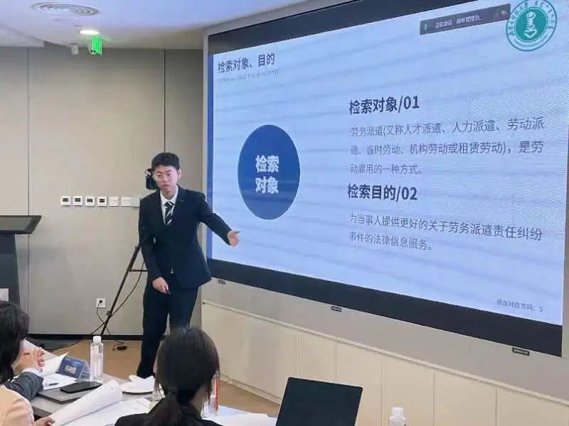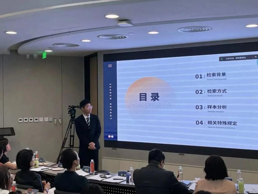 赛事第一轮为“法律成果展示”(30分),21个团队根据大赛组委会提前两周公布的题目,进行法律检索准备,并在5分钟内完成展示。评委根据选手的报告内容、PPT设计、现场讲解、检索方式等作出评分,选手根据法律检索成果展示与法律文书写作的综合得分晋级下一轮比赛。pp电子代表队由童臻尧同学进行演示,本轮环节综合排名第一。
