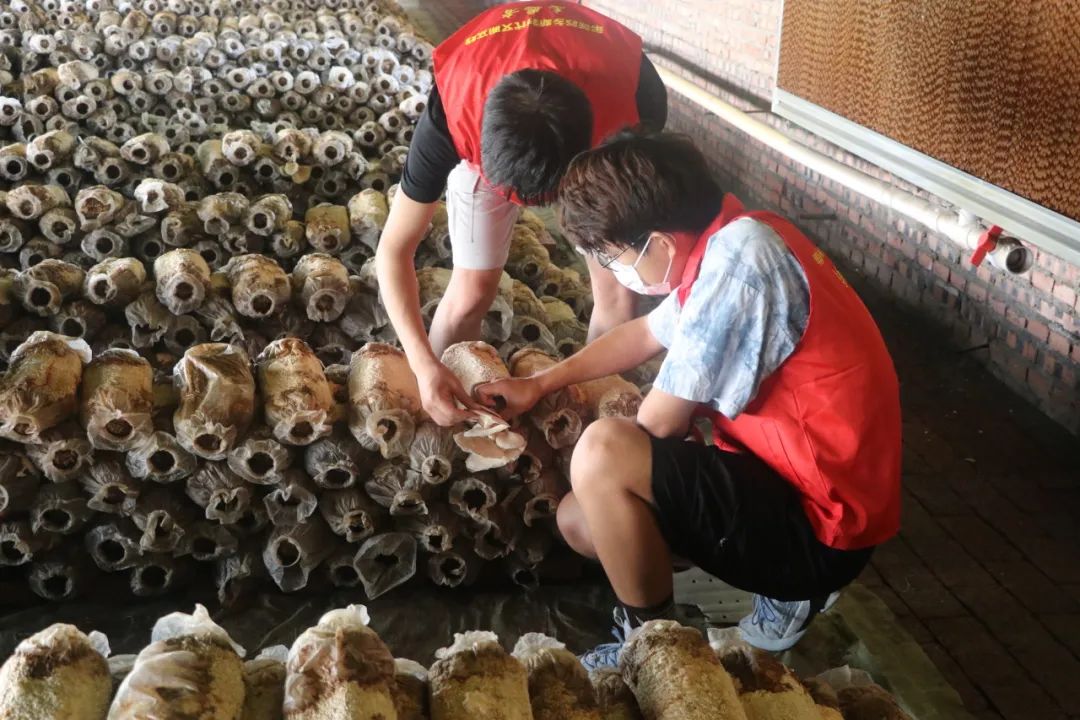 活动第二站,志愿者们前往奈曼旗营子村的食用菌生产基地,与勤劳的当地种植户一起投入了食用菌的采摘工作,他们通过团队合作不仅体验了劳动的艰辛与成就感,还以实际行动诠释了劳动实践的真谛,为这片土地增添了一抹青春的色彩。