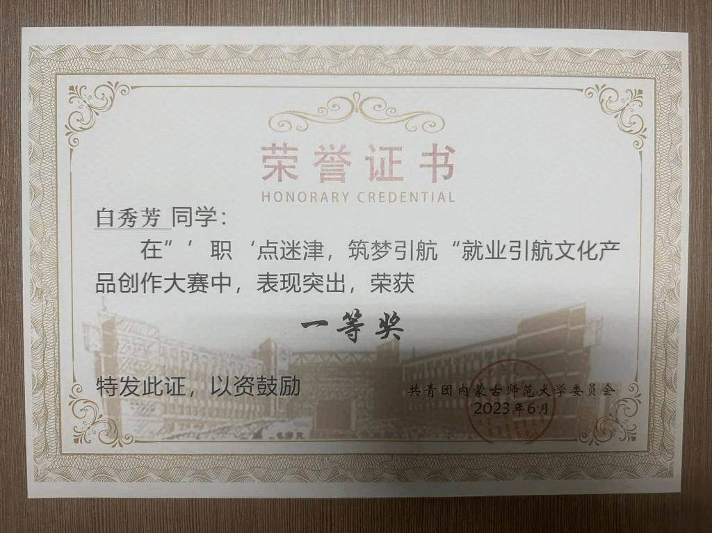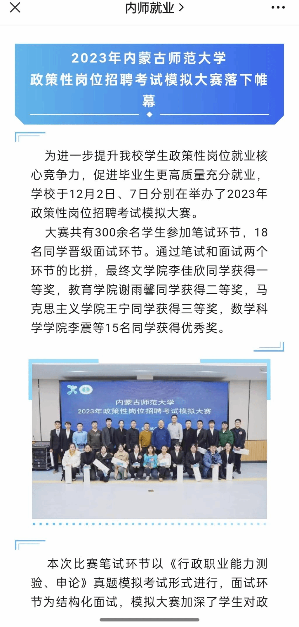 (四)内蒙古师范大学政策性岗位招聘考试模拟大赛中我班王宁同学荣获校级三等奖