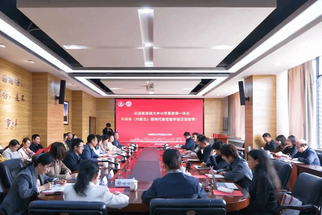 刘爱华副院长介绍了内蒙古师范大学大中小学思政课一体化建设情况,由内蒙古自治区教育厅和思政处牵头积极开展集体备课会,建立起以“石榴红”“北疆绿”“航天蓝”为核心的课程体系,着力在民族团结进步、生态文明建设、赓续航天精神等方面打造精品课程。