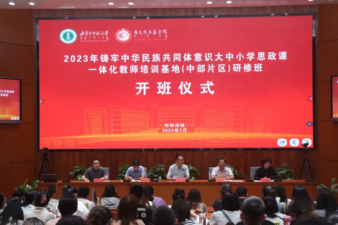为深入学习贯彻习近平总书记关于加强和改进民族工作的重要思想,认真贯彻落实中央民族工作会议精神,不断推动铸牢中华民族共同体意识教育融入大中小学思政课教学,切实打牢内蒙古青少年民族团结思想基础,2023年7月24日至28日,来自呼和浩特市、乌兰察布市和锡林郭勒盟三地176所中小学的200名教师参与全区铸牢中华民族共同体意识大中小学思政课一体化教师培训基地(中部片区)研修班。此次研修班邀请到上海、天津和内蒙古共21位专家学者为学员进行授课。